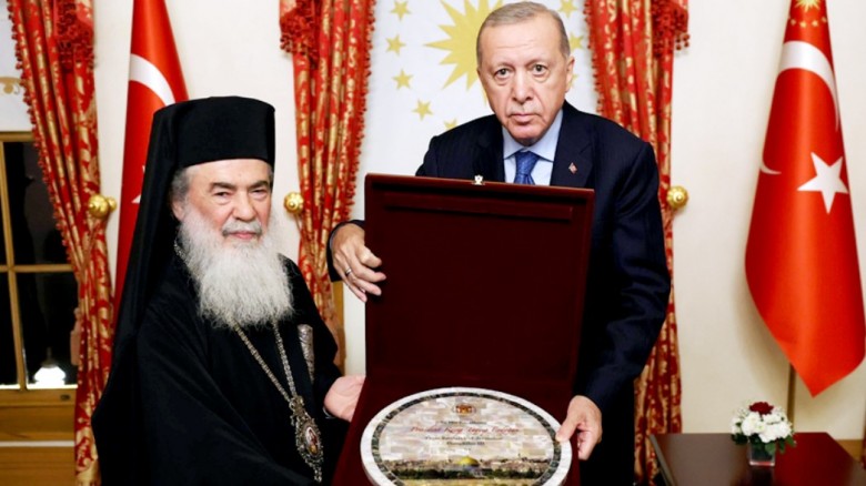 এরদোয়ানকে খলিফা উমর (রা.)-এর সঙ্গে খ্রিষ্টানদের চুক্তিপত্রের প্রতিলিপি উপহার দিলেন জেরুজালেমের পাদরি