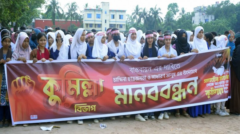 মিছিলটি বের হয়ে ঢাকা-চট্টগ্রাম মহাসড়কের চান্দিনা বাস স্টেশনে গিয়ে মানববন্ধন শেষে