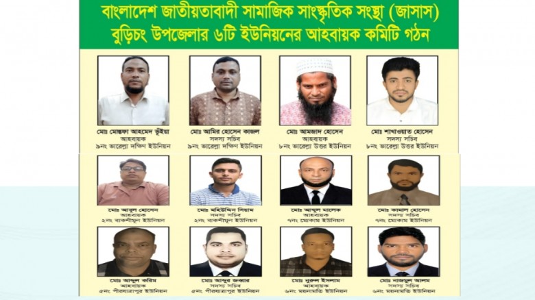 কুমিল্লার বুড়িচং উপজেলা জাতীয়তাবাদী সামাজিক সাংস্কৃতিক সংস্থা (জাসাস)-এর আওতাধীন ছয়টি ইউনিয়ন কমিটি অনুমোদন করা হয়েছে।