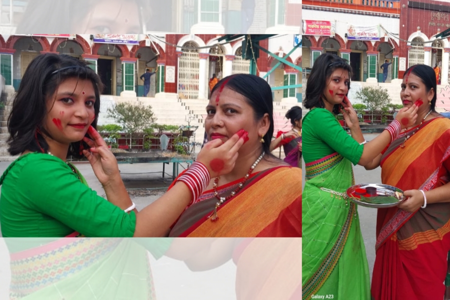 বিজয়াদশমীতে সিঁদুর খেলায় মেতে ওঠে বিবাহিত বাঙালি হিন্দু মহিলারা